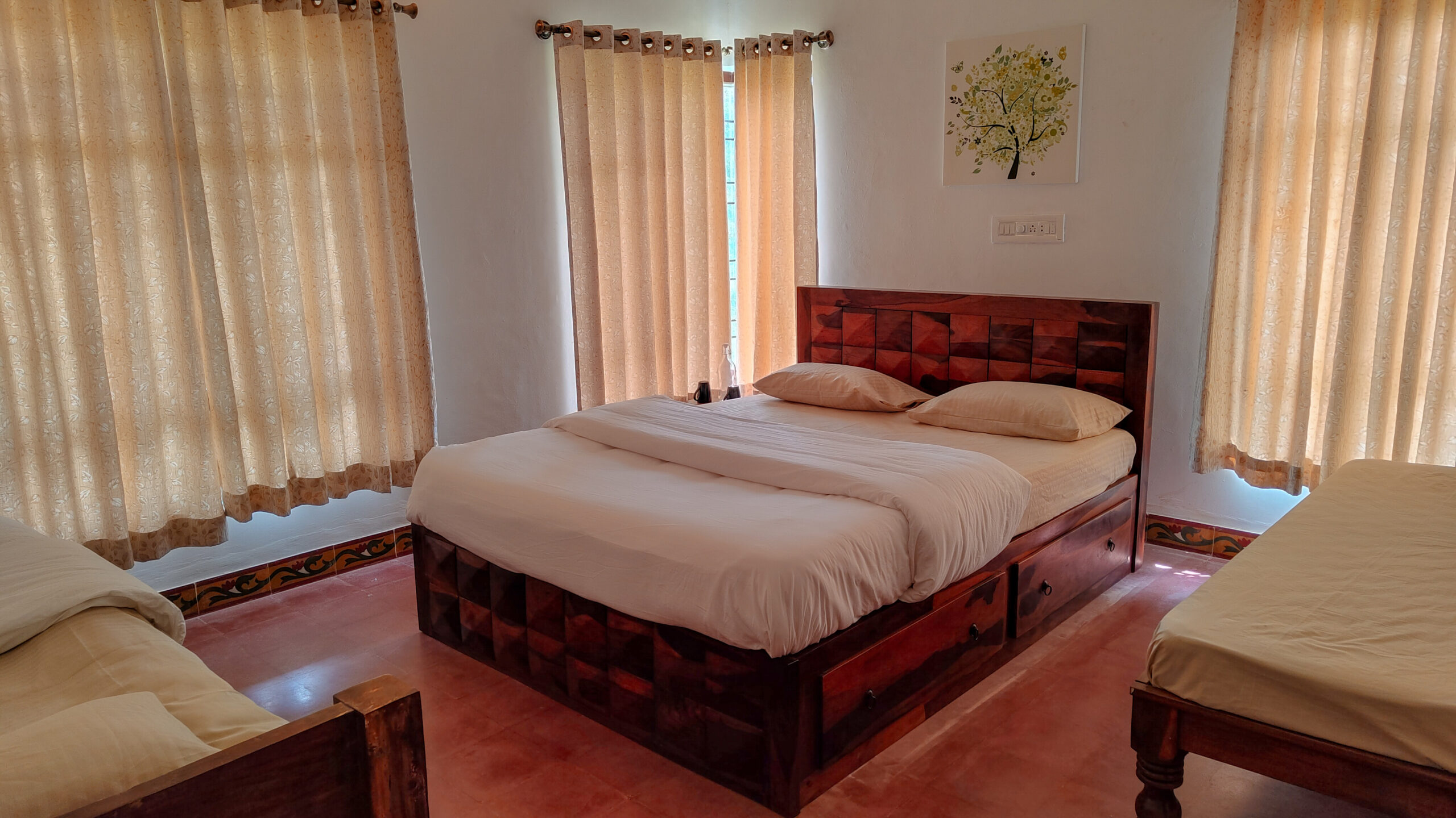 All our rooms are inside a single house, making the stay safe and comfortable for families with children. There are no deep water bodies within the stay premises, so parents can be at ease.